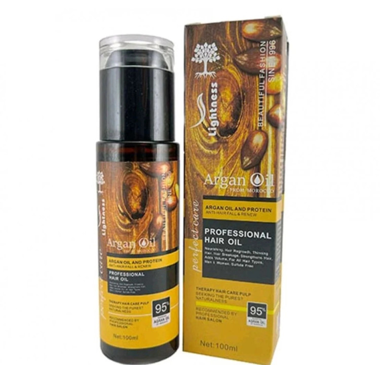 روغن آرگان لایتنس حاوی 95 درصد روغن آرگان طبیعی در ترکیبات خود است. که باعث نرمی و لطافت بافت مو شده و ساقه مو را تقویت می کند. روغن آرگان از خواص فوق العاده ای برخوردار است از جمله اینکه، باعث درخشان شدن و شادابی بافت مو می شود. وزی و خشکی را از بین برده و از ایجاد موخوره و شکنندگی نیز جلوگیری میکند. روغن آرگان حاوی مقادیر زیادی اسید چرب و ویتامین E است که باعث تقویت و سلامت ساختار مو شده و موهایی سالم و زیبا را به ارمغان می آورد. روغن آرگان لایتنس، بدون سولفات است بنابراین از موها به خوبی مراقبت و محافظت کرده و موهایی درخشان را به شما می بخشد. همچنین بخاطر نداشتن سولفات موهای کراتینه به راحتی میتوانند از آن استفاده کنند. روغن آرگان لایتنس رطوبت مو را حفظ کرده و از ریزش مو جلوگیری میکند.